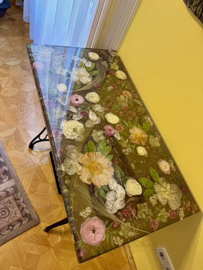 Epoxi asztal virágokból – tervezés pasztell árnyalatokkal