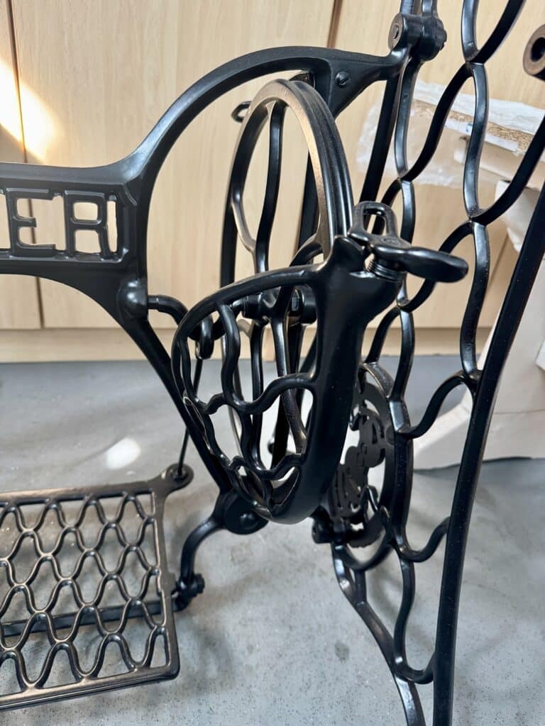 A váz egy hagyatékból megmaradt és régóta a garázsban porosodó és korrodált Singer varrógép állvány, amely a férj néhai édesanyjáé volt, és ezáltal igen kötődött hozzá.